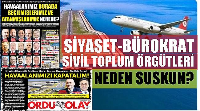 Ordu Olay Gazetesi son iki gündür Ordu Giresun Havalimanı’nın sefer problemlerini gündeme getiriyor. Gazete siyasetçileri, bürokratları ve sivil toplum örgütlerine çağrıda bulunuyor.