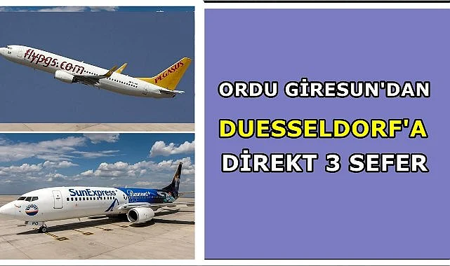 Sunexpress Hava Yolları, Ordu Giresun- Duesseldorf uçuşlarını kış döneminde devam ediyor.Sunexpress 28 Mayıs tarihinden itibaren haftada 2 uçuş gerçekleştirecek.