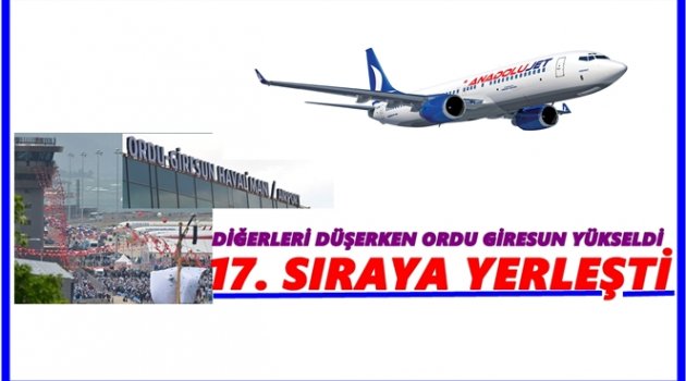 2016 yılında taşınan yolcu sayısı ile Türkiye’de kullanılan Havalimanları içerisinde 20. Sırada yer alan Ordu Giresun Havalimanı Ocak ayı sonu rakamlarına göre 17. Sıraya yükseldi.