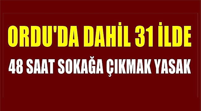 Ordu ile birlikte 31 ilde sokağa çıkma yasağı