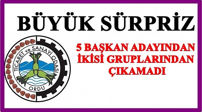 Ordu Ticaret ve Sanayi Odası seçimleri büyük sürprizlere sahne oldu. Garanti isimler gruplardan çıkamadı. Ticaret Odası Başkanlığı için aday olan 5 isimden ikisi grubunda kaybetti.
