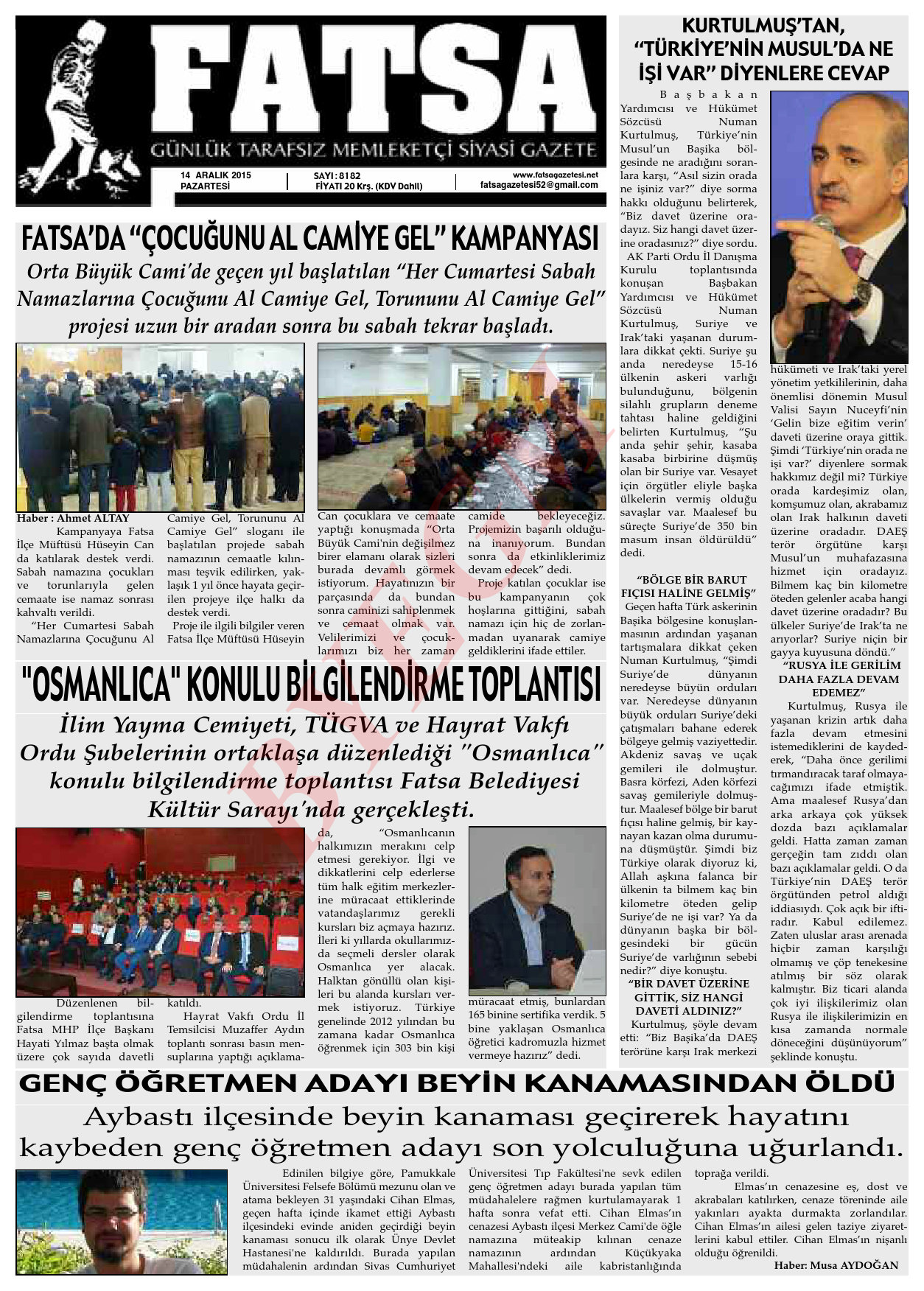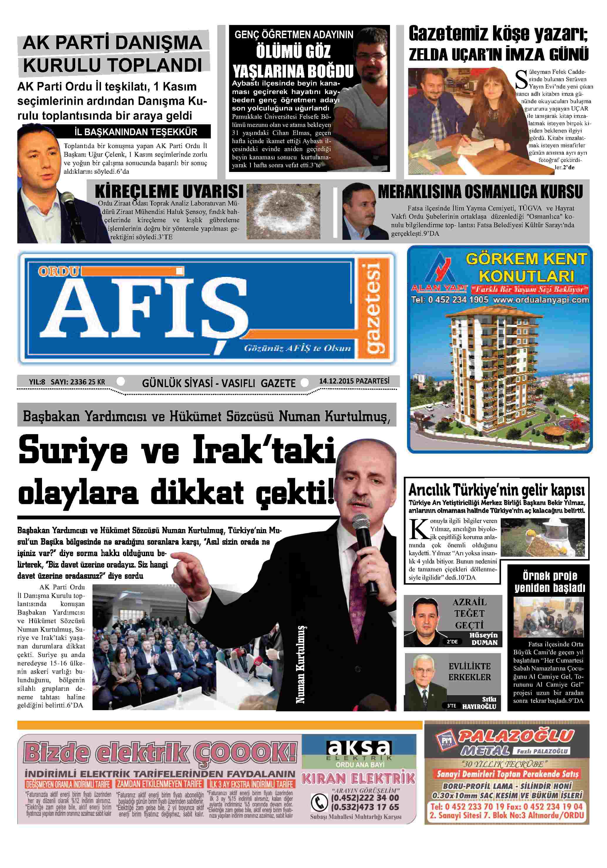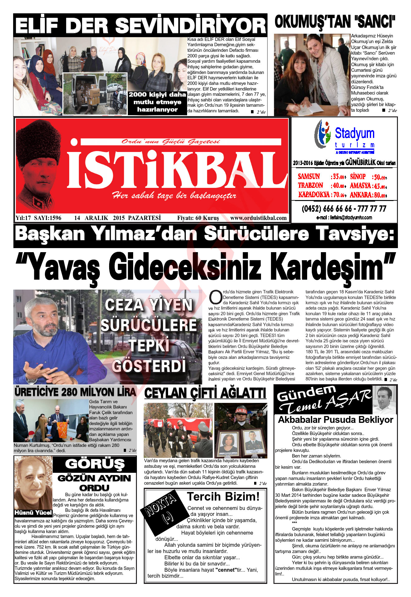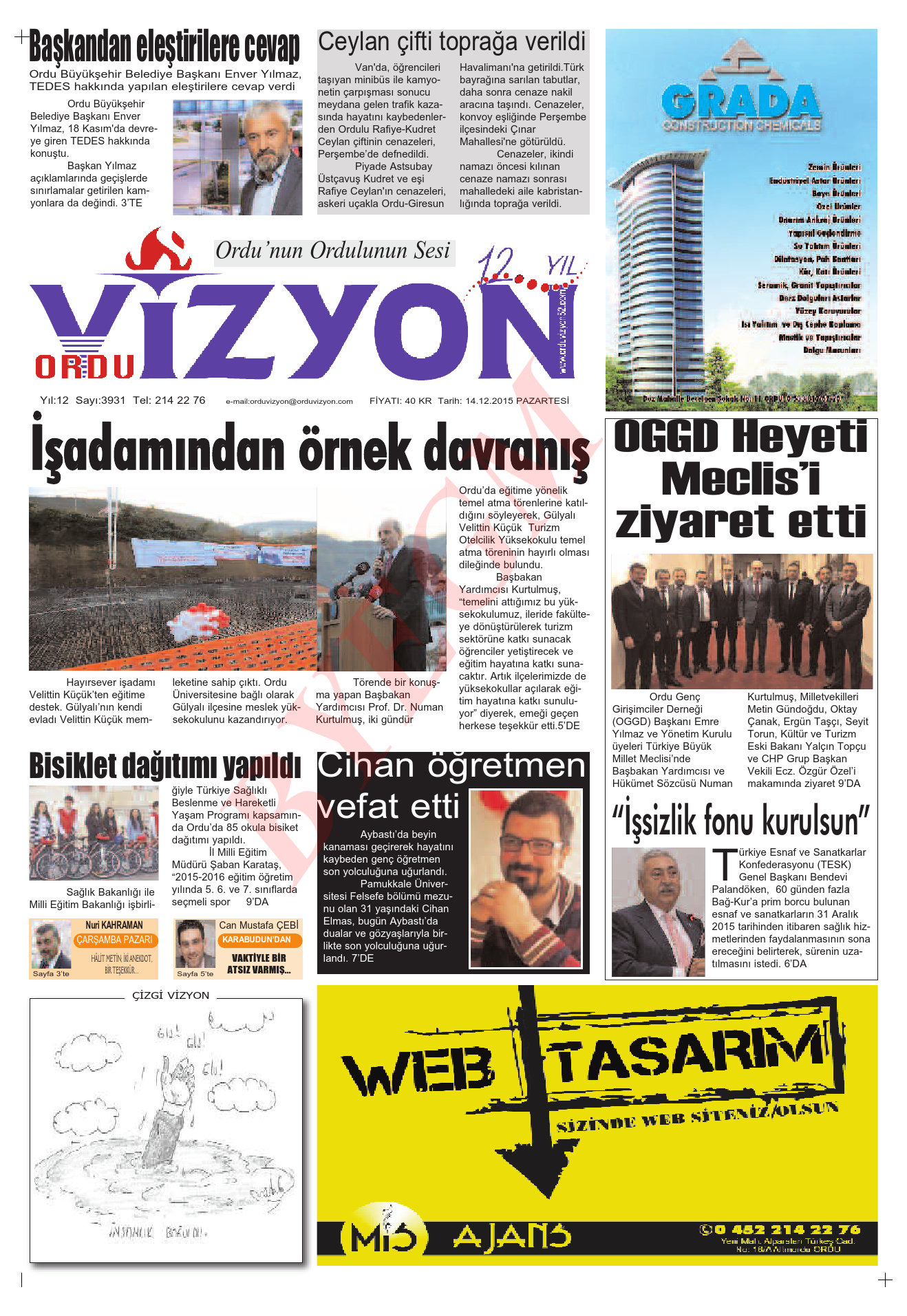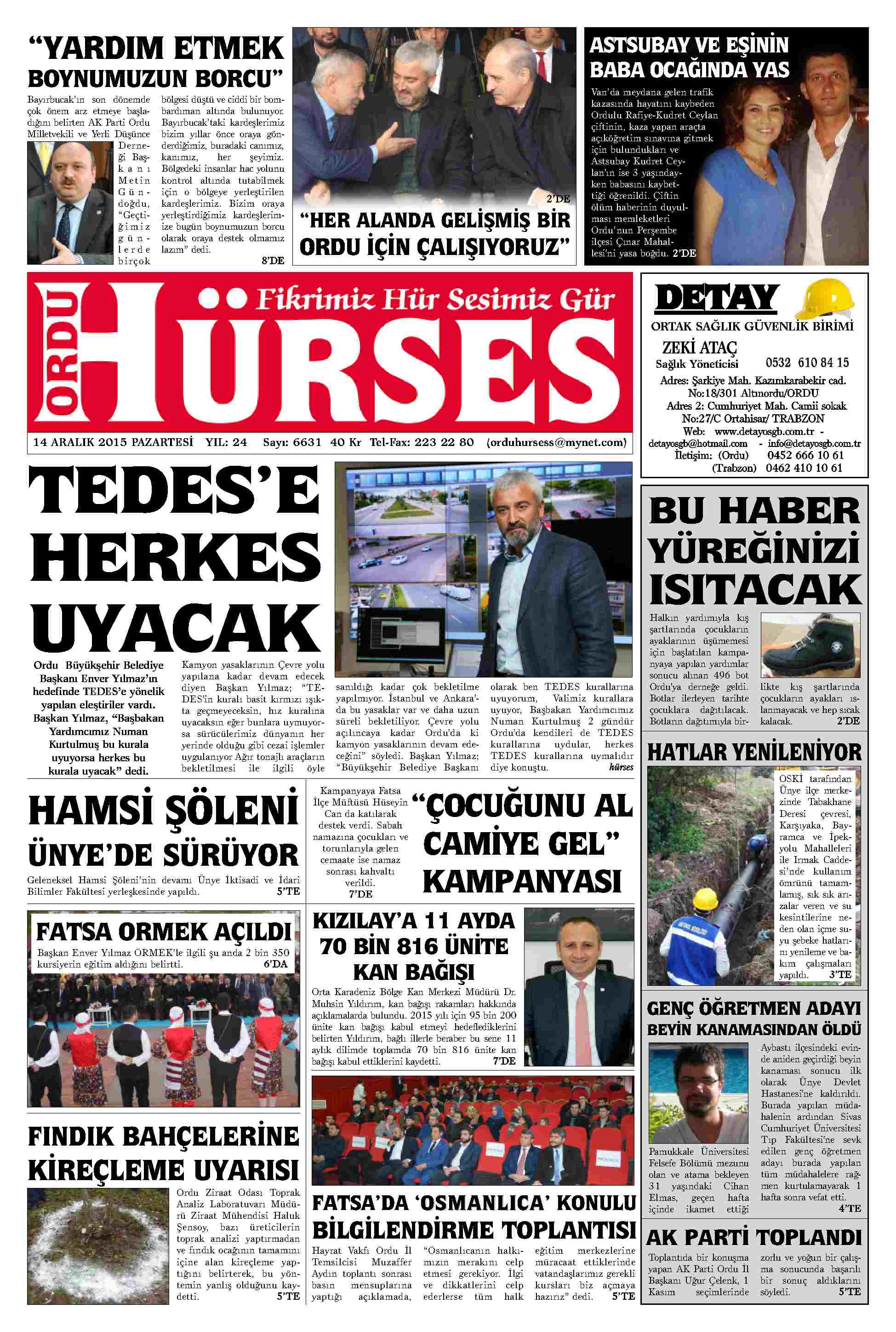 Ordu'da yayımlanan gazetelerin manşetlerini okumak için fotoğrafların üzerine tıklayabilirsiniz...