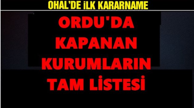 Ordu 14 ayrı kurum kapatıldı. Kapatılanlar arasında kısa adı ORİŞAD olan Ordu İşadamları Derneği de yer alıyor.