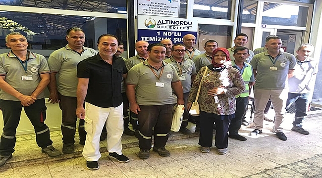Altınordu Belediyesi Temizlik İşleri Müdürlüğüne giden Erdoğan Sarıkaya, anahtarı bulan Murat Marangoz’a teşekkür ederek küçük bir hediye takdim etti.
