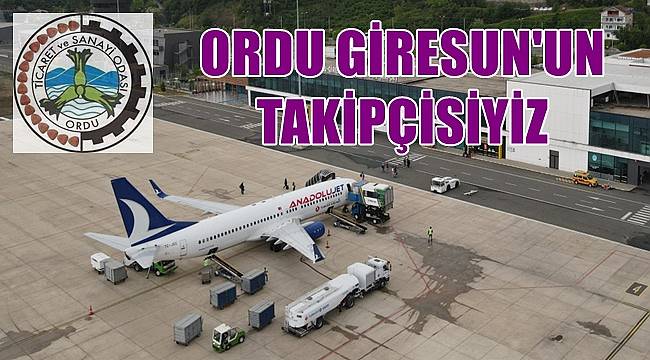 “07.02.2022 tarihinde, Ordu-Giresun Havalimanı’nda yurt dışına karşılıklı direkt uçuşlar konulması ve yurt içi uçuşlarda sefer sayılarının artırılması talebimiz Türkiye Odalar ve Borsalar Birliği (TOBB) aracılığı ile Devlet Hava Meydanları İşletmesi Genel Müdürlüğü’ne ve ilgili firmalara (Türk Hava Yolları AO, Anadolu Jet, Sun Express, Pegasus) firmalarına iletilmiştir.