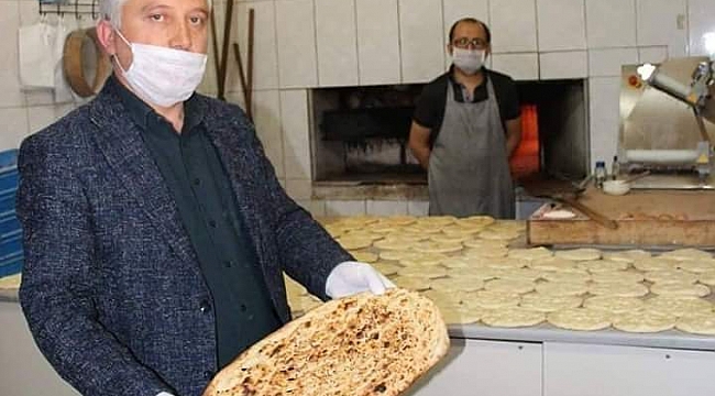 Mesudiye Belediye Başkanı İsa Gül bedava pide dağıtıyor.