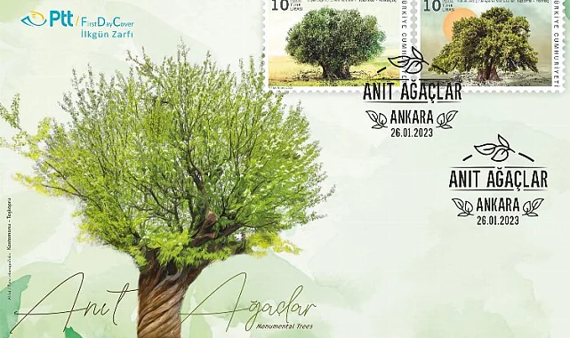 İSTANBUL (İGFA) - PTT AŞ 26 Ocak 2023 tarihinde "Anıt Ağaçlar" konulu 2x10 TL bedelli (36x52 mm boyutunda) anma pulu, söz konusu pula ait 30 TL bedelli ilkgün zarfı abone sayısı kadar PTT iş yerlerinde, PTT’ye ait www.filateli.gov.tr web adresinde ve filateli cep uygulamasında satışa sundu.