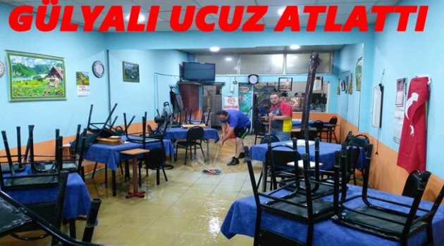 Gülyalı Merkez’de de işyerlerini su bastı.