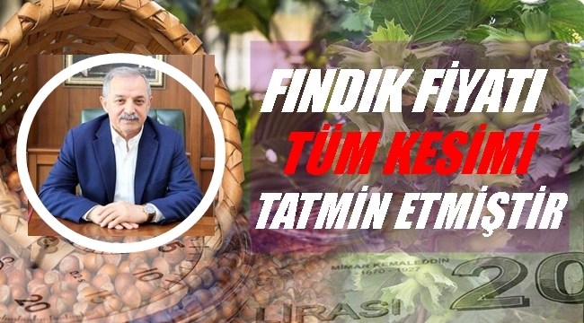 Fındık fiyatının günümüz koşullarında minimum 3 dolar olması gerektiğini belirttik. Geçen yıl sezon başında 12 TL olan fındık, sezon sonunda 18 TL civarında satıldı. 5 milyar kazanç dış alıcının cebine gitti. Sayın Cumhurbaşkanımız buna dur diyerek üreticinin yanında oldu. Her yıl bazı kesimlerin kontrolünde bir fiyat açıklaması olurdu. Sayın Cumhurbaşkanımızın bunu fark etmesi bizleri çok memnun etti. Bu fiyat hem üreticiyi, hem sanayiciyi hem de bütün kesimleri tatmin eden bir fiyat oldu.” dedi.