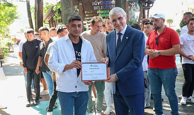 Ormanpark’ta ‘hayat timiyle’ buluşan Başkan Ekrem Yüce, cankurtaranları tek tek tebrik ederek belgelerini bizzat verdi.