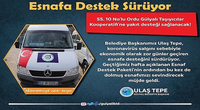 Koronavirüs salgını sebebiyle yaşamın kısıtlandığı bugünlerde dolmuş esnafının zorlu süreçlerden geçtiğini belirten Başkan Ulaş Tepe, “İçişleri Bakanlığımızın yayınlamış olduğu ek tedbirler kapsamında yolcu taşımacılığının da sınırlandırılmasıyla kooperatifimiz üyeleri ekonomik olarak hizmetleri sürdüremeyecek noktaya geldi. Taşımacılık hizmetlerinin sürdürülmesi için esnafımıza destek olmak istiyoruz. Bu kapsamda dolmuş esnafımıza bir miktar yakıt desteğinde bulunacağız” dedi.