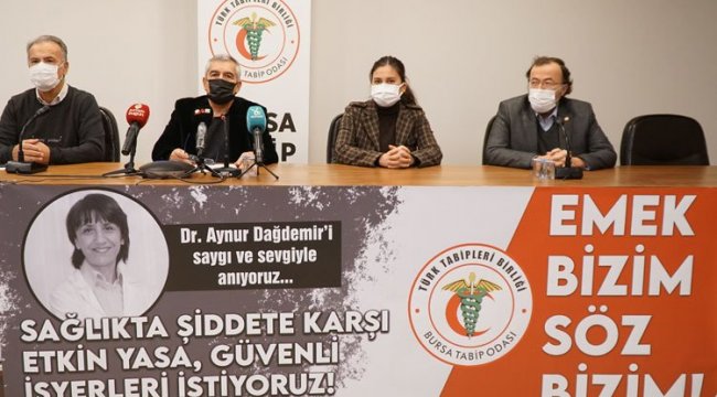 Taleplerini sıralayan Bursa Tabipler Odası, sağlıkta şiddetin ana kaynağı olan neoliberal sağlık politikalarından derhal vazgeçilmesini, sağlık kurumlarında şiddeti önleyen fiziksel değişiklikler yapılmasını, güvenli işyerleri oluşturulmasını, İstanbul Sözleşmesi’nin yeniden yürürlüğe konup etkili şekilde uygulanmasını ve iş yaşamında şiddet ve tacize karşı ILO 190 Sözleşmesinin imzalanmasını istedi.