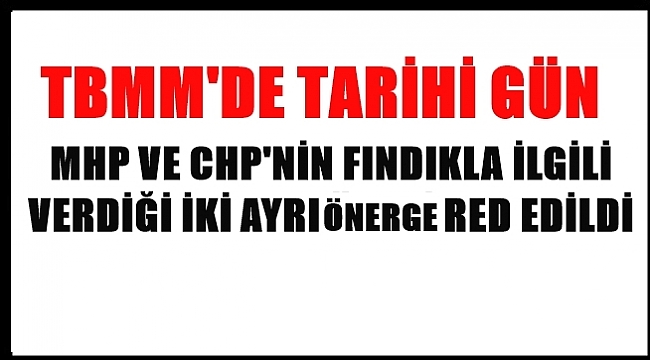 Türkiye Büyük Millet Meclisi’nde MHP ve CHP tarafından verilen iki ayrı önerge AK partili vekillerin oylarıyla red edildi. AK Partili vekiller önümüzdeki haftalarda fındıkla ilgili meclise önerge getireceklerini açıkladı.