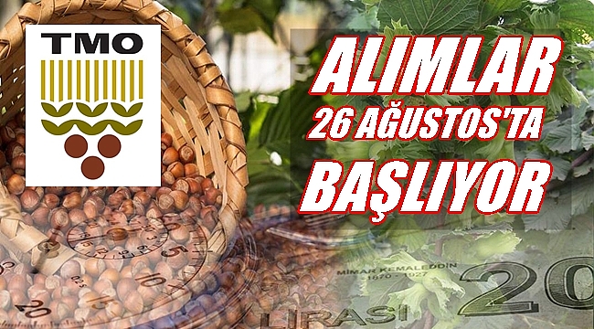 Toprak Mahsulleri Ofisi (TMO) fındık alımına Ordu’da 26 Ağustos’tan itibaren başlıyor.