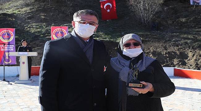 Şehitliğin yanındaki alana yapılan Mehmetçik Çeşmesi'nin de açıldığı programda, şehit aileleri ve gazilere plaket verildi.