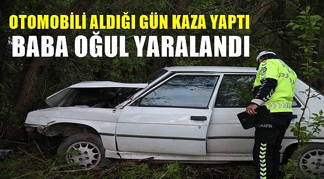 TOKAT (AA) - Tokat'ta yeni satın aldıkları otomobille kaza yapan baba ile oğlu yaralandı.