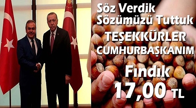 İl Başkanı Halit Tomakin, “Cumhurbaşkanımız Recep Tayyip Erdoğan’ın grup konuşmasında da belirttiği gibi biz hiçbir zaman üreticilerimizi yalnız bırakmadık. Açıklanan fiyat piyasa değerinde ve beklentilerin üzerinde bir fiyat oldu. Cumhurbaşkanımıza bir kere daha binlerce kez teşekkür ediyoruz. Cumhurbaşkanımızın grupta yaptığı fındık konuşmasında "Biz 18 yıldır üreticilerimizi yalnız bırakmadık. Bu sene rekolte yaklaşık 700 bin ton. Bu durum karşısında TMO'ya hasat dönemi başlamadan fındık alımı yapması için talimat verdim. Fındık pazarında üretici aleyhine oluşacak fiyat belirsizliklerini ortadan kaldırmak istiyoruz. Burada taban fiyatlarını açıklıyorum. Yüzde 50 randıman esasına göre Giresun Kalite kabuklu fındık 17 lira, levant kalite 16.5 lira. Üreticimize hayırlı olsun. Kurban bayramının hemen ardından TMO alım yapacağını belirttiğini ifade ederek, yeni dönemin ve fındık fiyatlarının üreticilerimize bol ve bereketli kazançlar getirmesini temenni ediyorum” dedi.