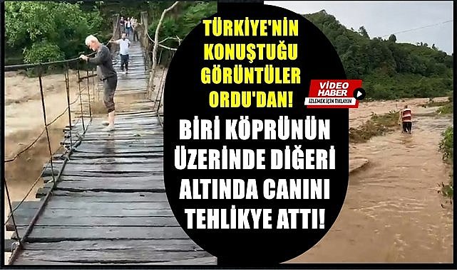 Görüntüler Ordu’da selin vurduğu İkizce ilçesinden. Birisi köprünün üzerinde diğeri altında canını tehlikeye attı. Sel sularının içerisinde bir kişi balık avladı…