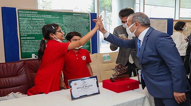 Vali Tuncay Sonel, Teknofest, Tübitak, Twinning İyi Örnekler Sergisi'nin yer aldığı stantlarının açılış kurdelesini de öğrencilerle birlikte kesti.